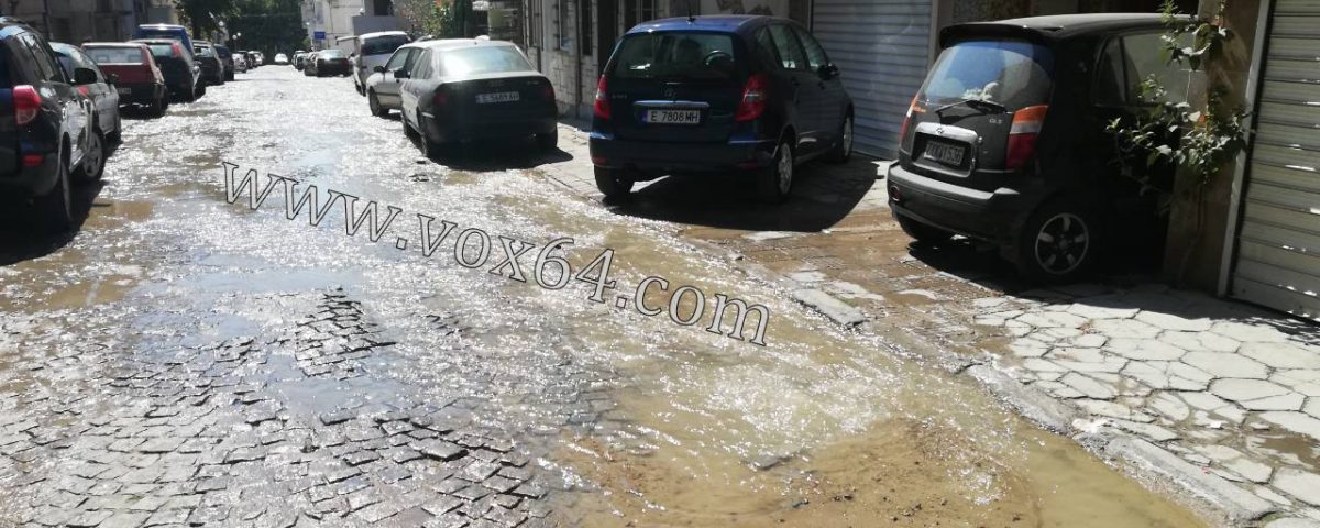 Преди по-малко от час, тръба се спука в Сандански на ул. “Васил Левски”. Водата текна като река по улиците “Георги Казепов”, “Малешевска”, “Пере Тошев” и бул. “Свобода”.
