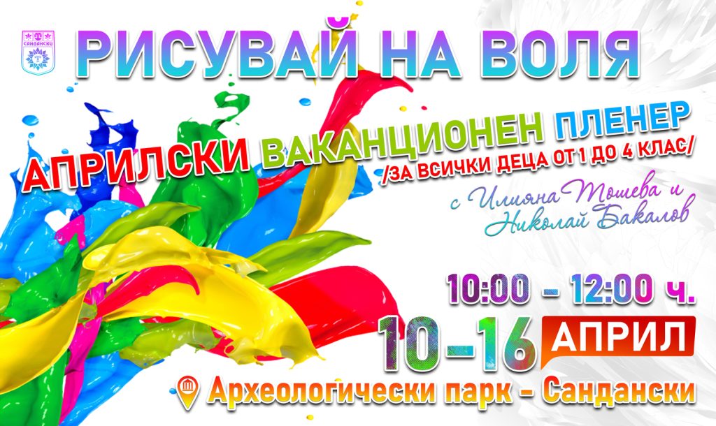 Дългоочакваната пролетна ваканция започна. Десет дни, в които децата на Сандански ще могат да се отдадат на любимите си занимания – ⛹️‍♂️спорт, 🎈игри, 🏞разходки, 🚘пътуване и 🍦свободно време с приятели. Оценявайки многообразните таланти, които има всяко дете и споделяйки желанието на всички ни – да откъснем децата от 📱мобилните устройства, община Сандански и Епископска базилика организират АПРИЛСКИ ВАКАНЦИОНЕН ПЛЕНЕР „Рисувай на воля“.