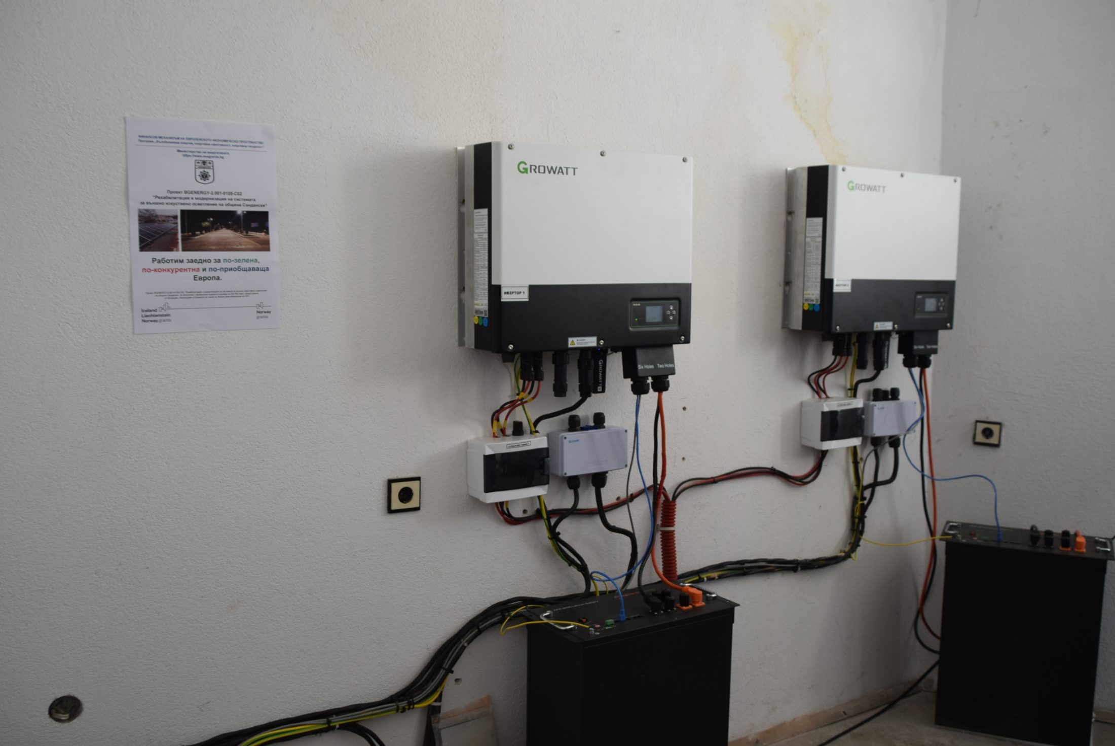 Всяка от фотоволтаичните централите е с мощност 7,5 kWp и разполага със собствен акумулаторен блок с мощност 9,6 kWh. за съхранение на произведеното електричество. Общата мощност на изградената фотоволтаична система за производство на електрическа енергия е 15 kWp, и за нейното акумулиране и отдаване в тъмните часове на денонощието 19,2 кWh.