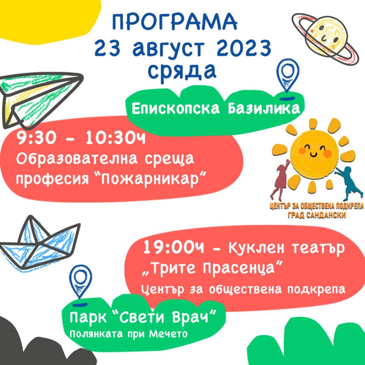 🌞 “Довиждане, лято!” 🌞 🌈Община Сандански представя безплатната Лятна ваканционна програма за деца, която ще се проведе от 21 до 23 август и ще бъде под надслов „Довиждане, лято”