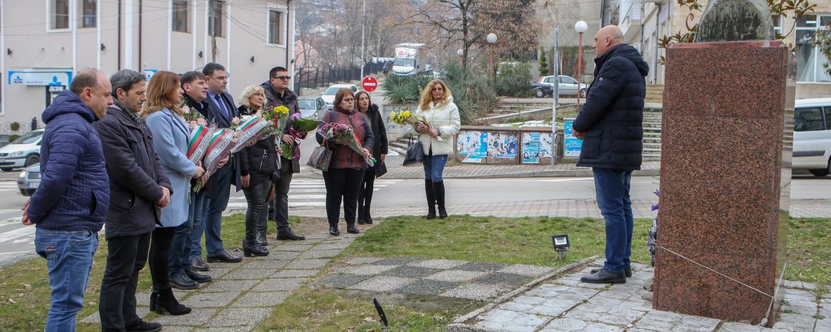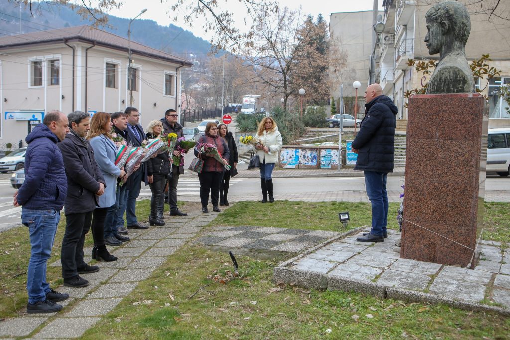 Цветя на паметника на Мануш Георгиев в град Петрич, сведена глава и минута мълчание за 114 години от смъртта на видния революционер, дал живота си в освободителното движение за Македония.
