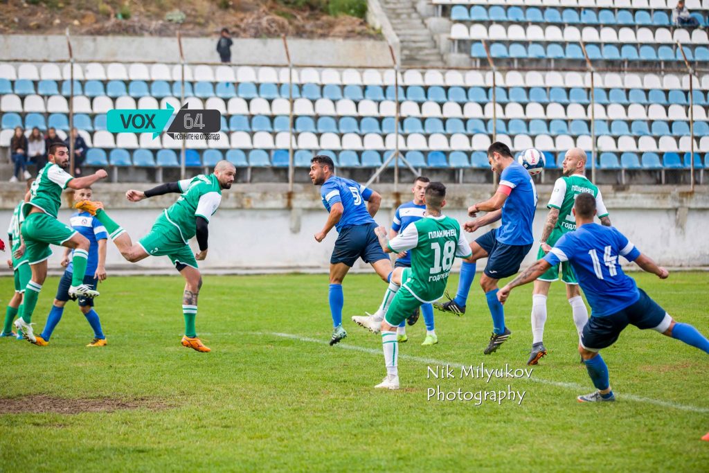 Срещата започна с натиск от домакините, които искаха победата на всяка цена. Крилото Слави Калчунков направи няколко пробива, които бяха завършени с центрирания към нападението, но без резултат. В средата на първото полувреме гостите отбелязаха красиво попадение дело на Георги Тончев. До края на полувремето гостите демонстрираха дисциплина и спокойствие на терена.