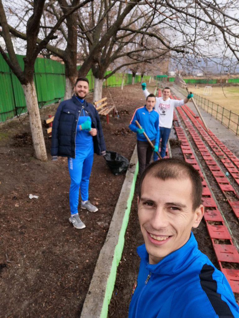 Освен, че боклуците бяха събрани, трибуните бяха почистени напълно от падналите листа, както и от счупени клони. По този начин те демонстрираха колектив и извън терена.