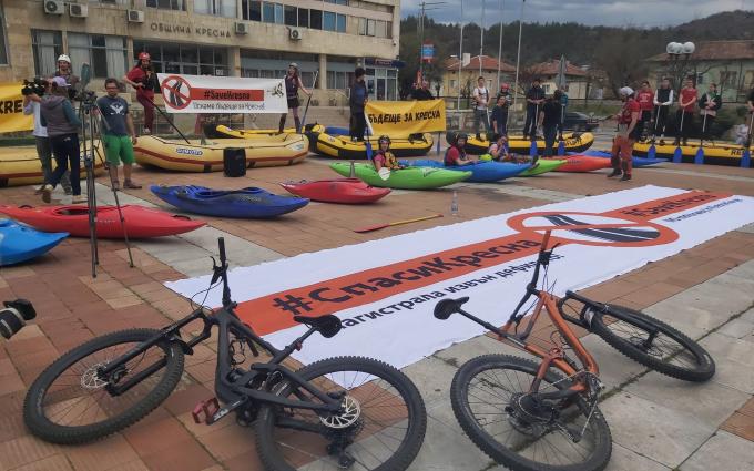 Протестът бе организиран от рафтинг-федерацията, каякари и местни хора.