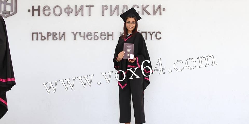 Очарователната репортерка Ваня Янева стана Отличник на Випуск 2017 в Стопанския факултет на ЮЗУ “Неофит Рилски” днес. Ваня завърши с успех 5.90, а за положените усилия и показаните резултати бе наградена от ректора проф. д-р. Борислав Юруков с плакет и поздравления.