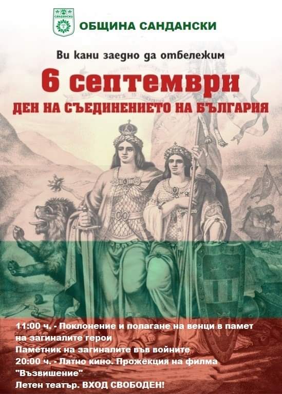 Община Сандански организира тържествено честване по повод 6 септември – Ден на Съединението на Княжество България и Източна Румелия.