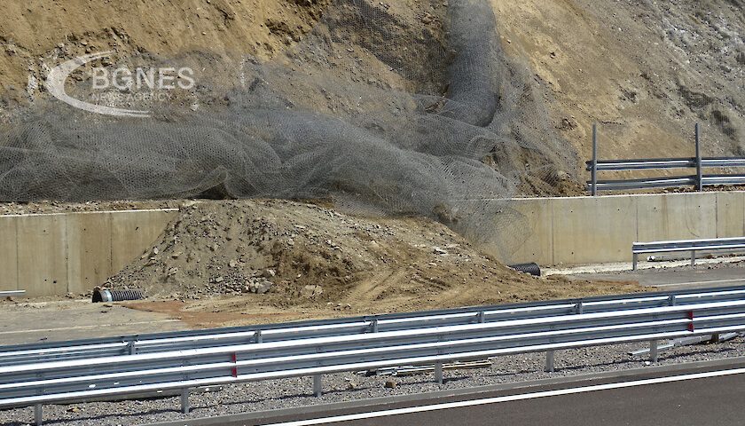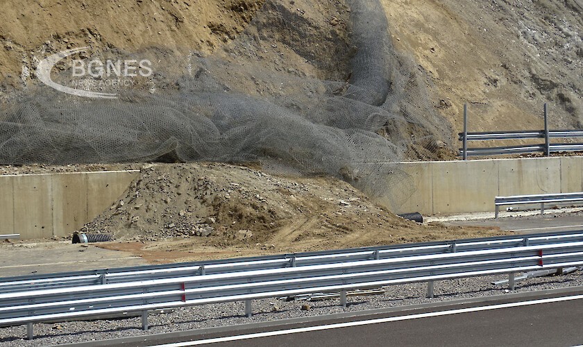 Трасето на автомагистралата от този скат до Сухата река все още се трасира. След това следва готовият участък, чийто скат се е срутил.