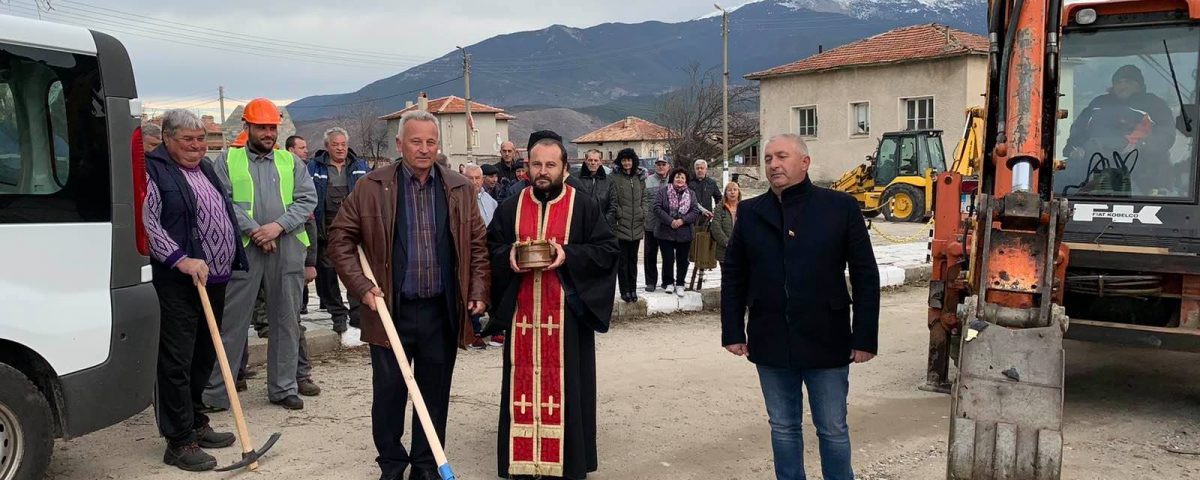 Веднага след това, кметът Георгиев направи първата копка на новия водопровод и мощно разби бутилка шампанско в кофата на очакващия да започне работа багер.