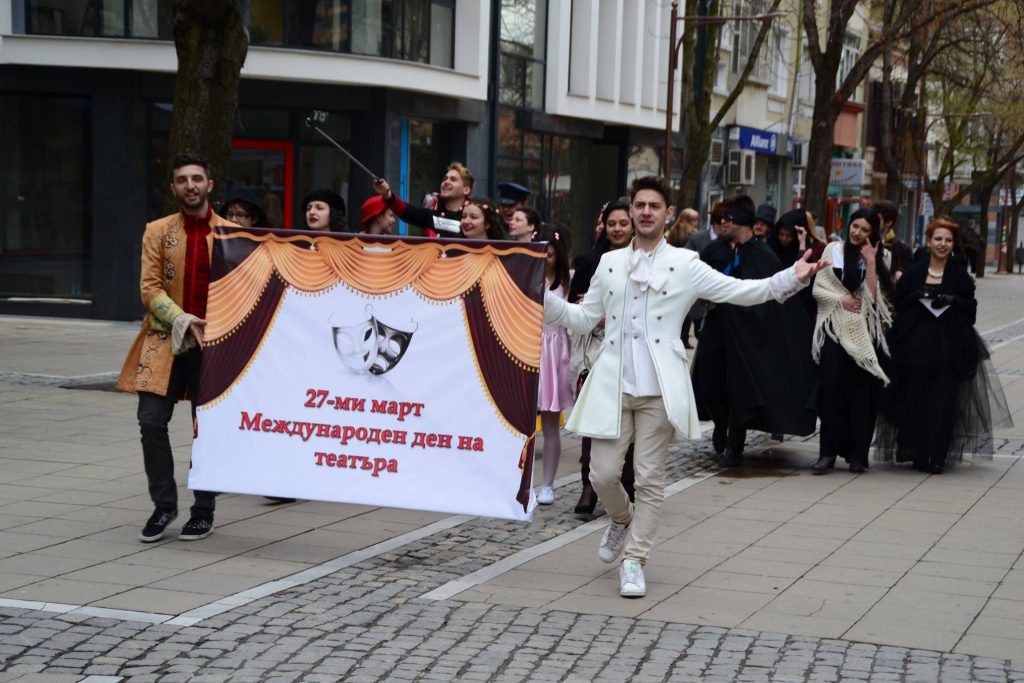 Студенти и преподаватели от специалност „Актьорско майсторство“ към катедра „Телевизионно, театрално и киноизкуство“ ще отбележат Международния ден на театъра с празнично шествие.