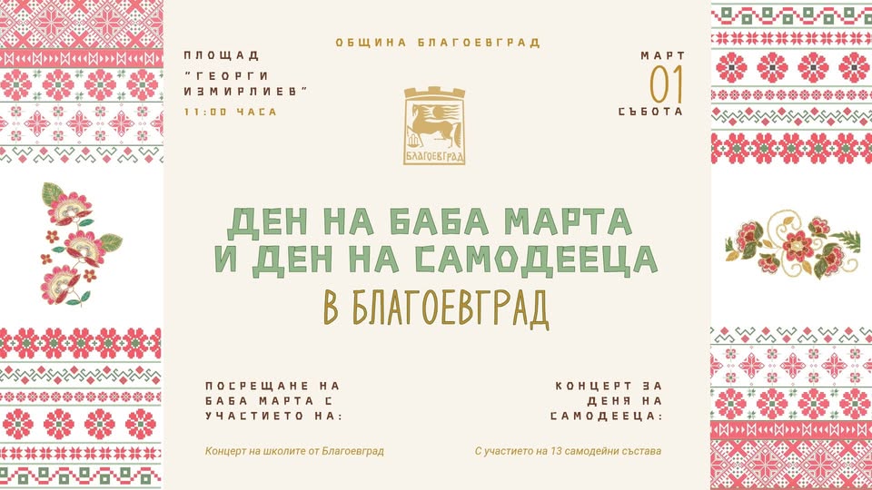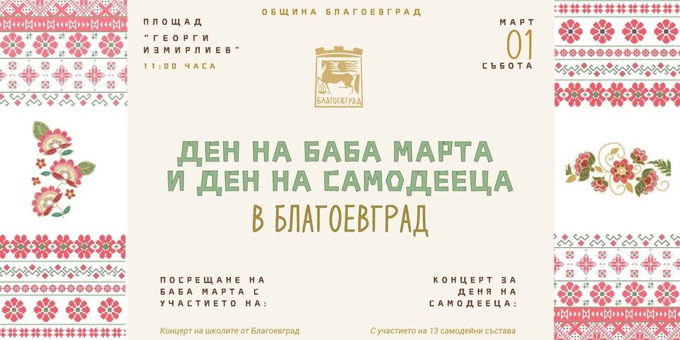Деца и възрастни ще могат да посрещнат самата Баба Марта в 11.00 часа на пл. „Георги Измирлиев“, където тя ще разкаже за древните български традиции, свързани със символа, обагрен в бяло и червено.