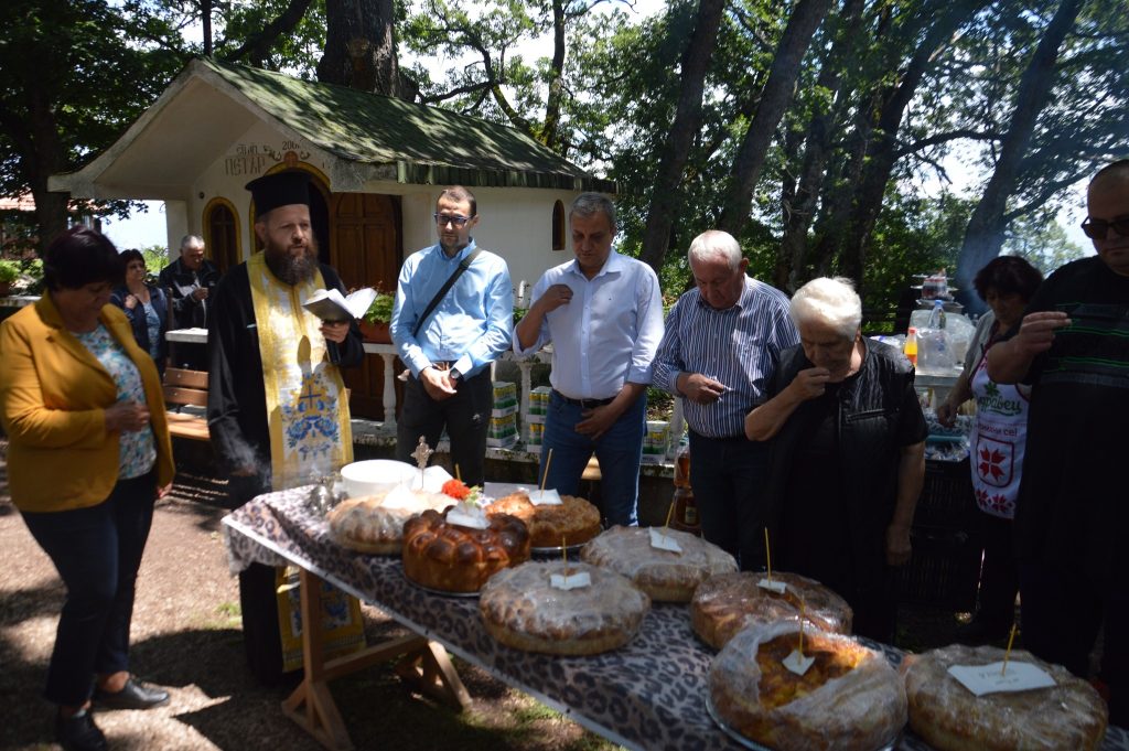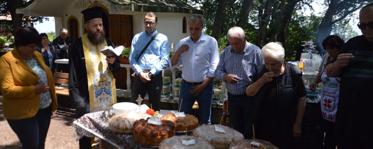 Пред църквата „Св. ап. Петър и св. ап. Павел“ отец Георги отслужи молебен и водосвет, след което освети курбана.