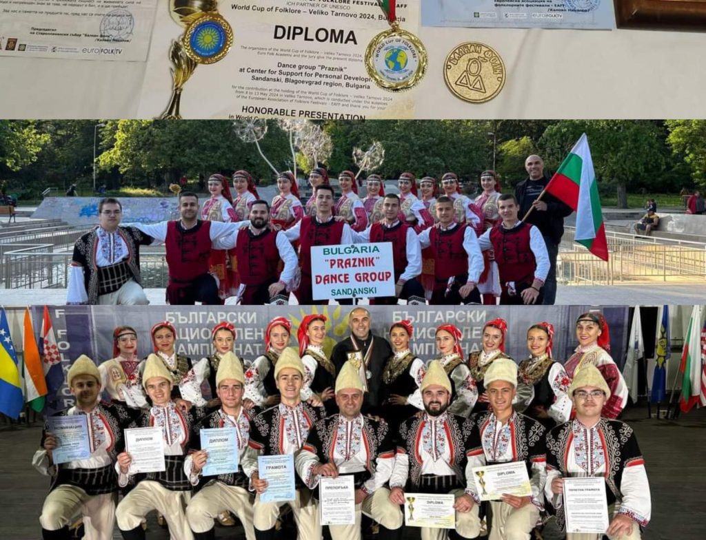 Момичетата и момчетата от ТС “Празник” към Център за подкрепа за личностно развитие, град Сандански отново грабнаха сърцата на публиката и журито на провелия се XIV Български национален шампионат по фолклор “Евро фолк 2024”, Велико Търново.