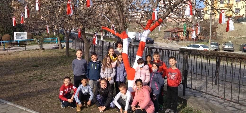 Освен, че украсиха двора, малките деца научиха и интересни истории за Баба Марта. Училището се намира до една от най-оживелите улици в града, както и в един от най-големите квартали.