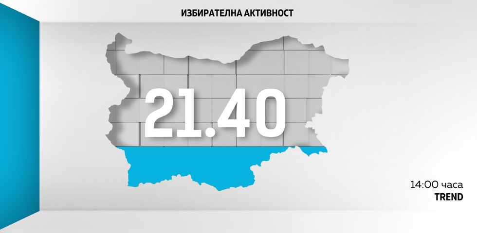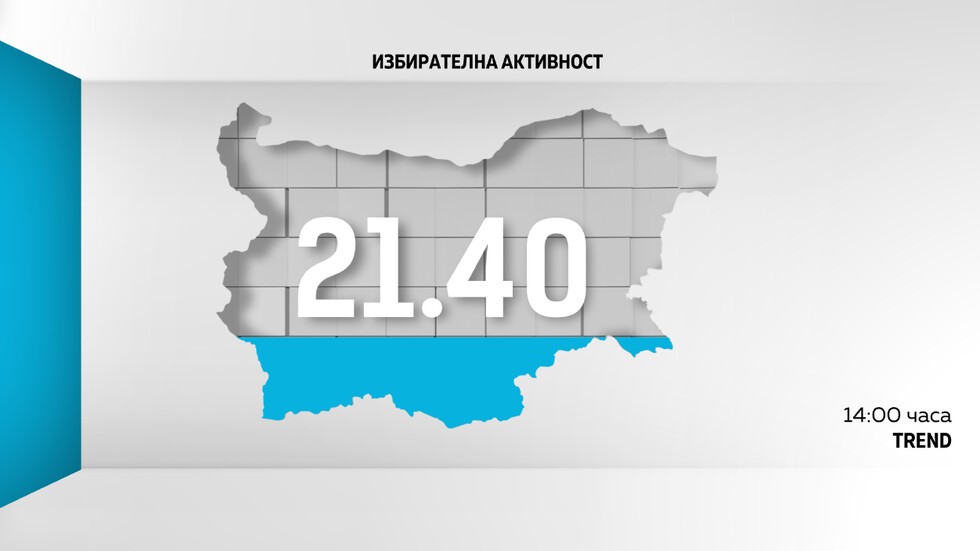 Избирателната активност към 14 часа е 21,4%, това сочат данните на агенция “Тренд”. Само час по-рано тя беше 18%, по данни на агенция “Галъп”.