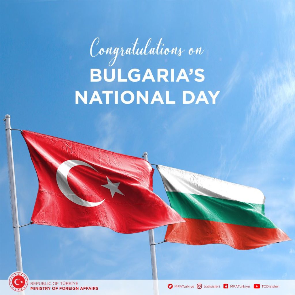 Министерството на външните работи на Турция публикува поздравление по случай националния празник на България 3 март.