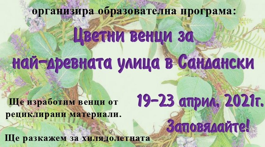 Тази година от 19 до 23 април ще ви научим как да изработвате цветни венци от рециклирани материали. Ще ви разкажем за хилядолетната история на рециклирането.
