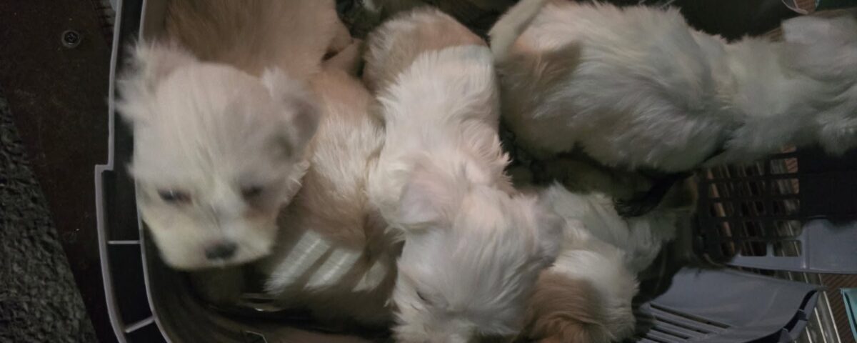 Животните са на видима възраст под 6 месеца и са от породи йоркширски териер, малтийска болонка и той пудел.