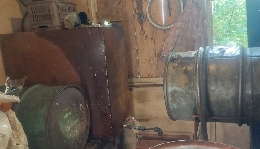 В хода на контролните действия митническите служители откриват в селскостопански постройки на територията на имота общо около 4200 литра наливен етилов алкохол в бидони, с характеристики на ракия и с различни алкохолни градуси – до 70 градуса, включително, без документи за произход.