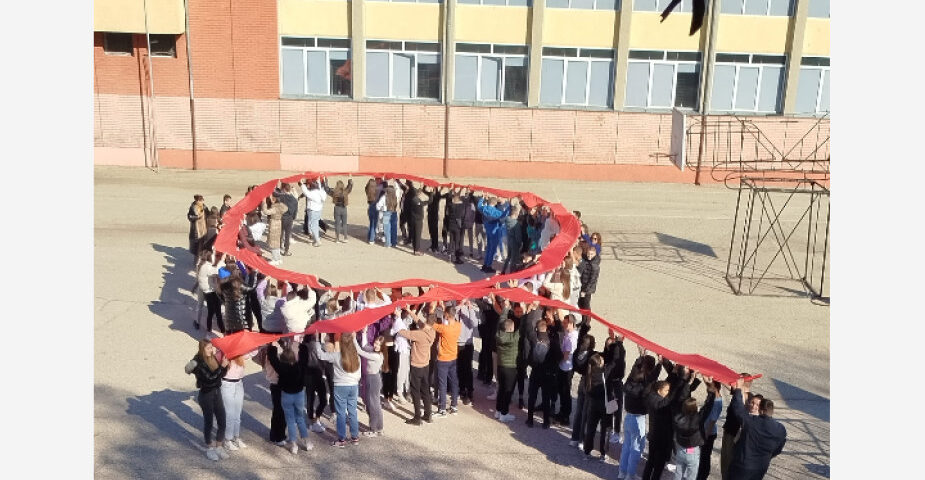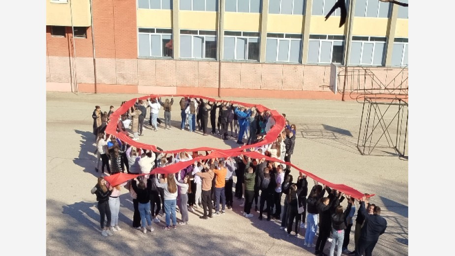 В края на деня учениците, водени от Бианка Равначка, оформиха 121-метрова червена лента като панделка, символ на съпричастността към носещите вируса на ХИВ/СПИН в световен мащаб.