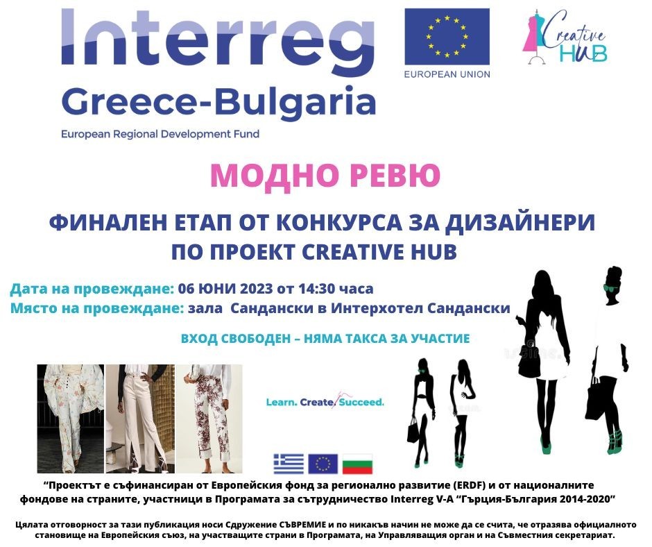 ОРГАНИЗИРАНО В РАМКИТЕ НА КОНКУРС ЗА МЛАДИ ДИЗАЙНЕРИ НА МОДНО ОБЛЕКЛО ПО ПРОЕКТ CREATIVE HUB