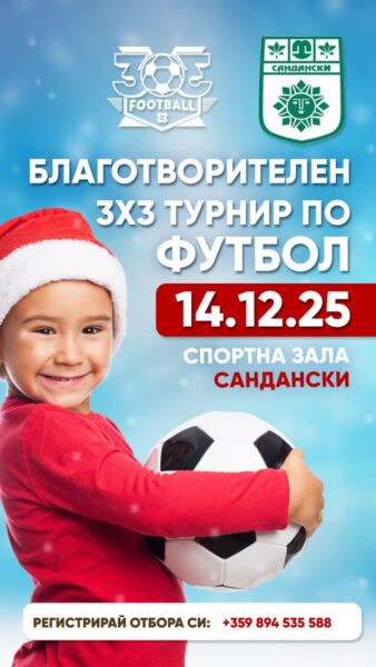 На 14 декември 2025 г. в Спортна зала – Сандански ще се проведе благотворителен турнир Сандански по формат 3х3 футбол.