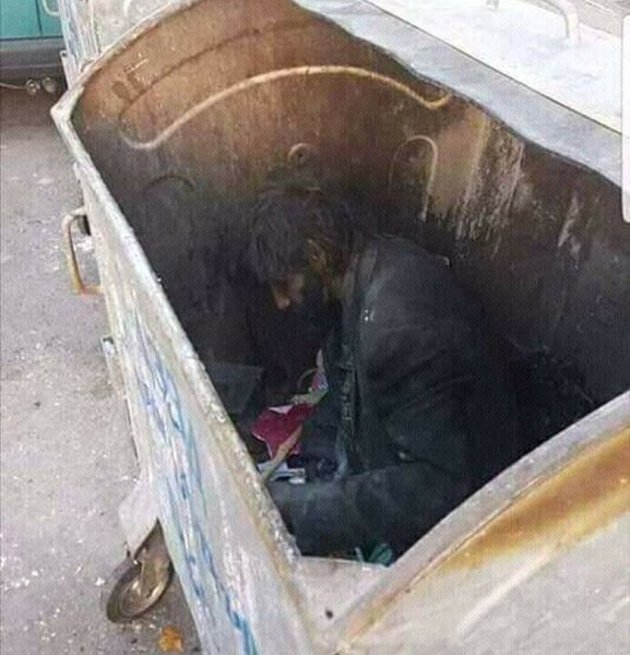 Снимка обиколи интернет пространството и предизвика буря от емоции. Мъж, сврян в контейнер за боклук! Свил се е, очевидно му е студено, целият му вид крещи за безпомощност и мизерия. Мъжът е млад. И е българин.