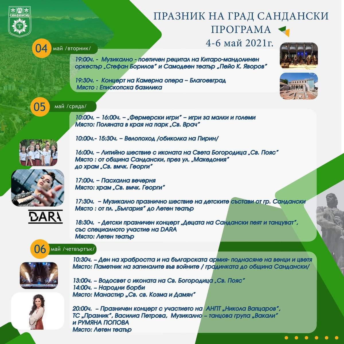 На светли четвъртък след Великден град Сандански чества традиционно своя празник. Тази година община Сандански разгръща празничната програма в рамките на три дни, в които всички […]