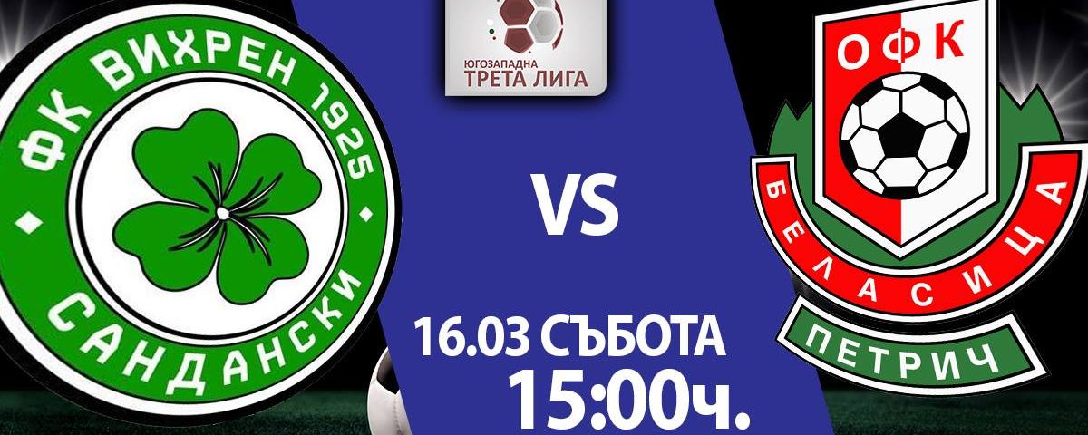 Тази събота Вихрен Сандански посреща Беласица Петрич в регионалното дерби на градския стадион в Сандански от 15:00ч.