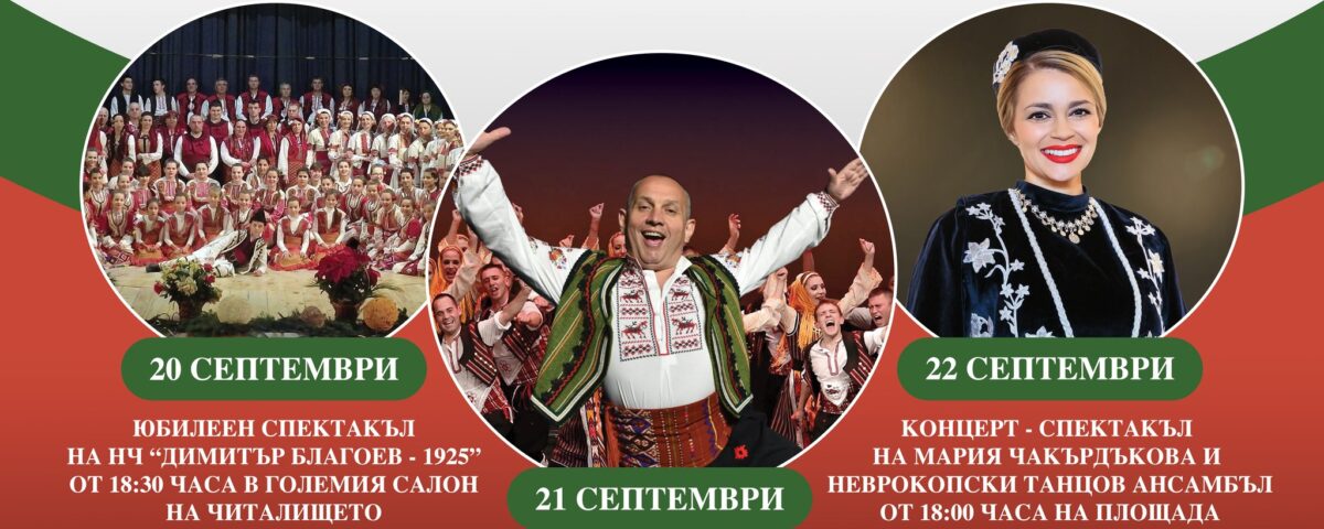 22 септември – Денят на независимостта и празникът на Добринище ще бъдат отбелязани с съвместен концерт на Мария Чакърдъкова и Неврокопския танцов ансамбъл – вълнуваща среща между националната гордост и местните традиции.