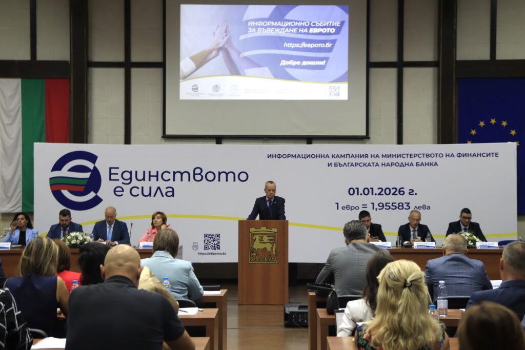 Приемането на еврото е втората голяма стъпка за България след присъединяването към Шенген в началото на тази година. Това заяви кметът на Благоевград Методи Байкушев по време на събитие от Националната информационна кампания за въвеждане на еврото, организирана от Министерството на финансите и БНБ.