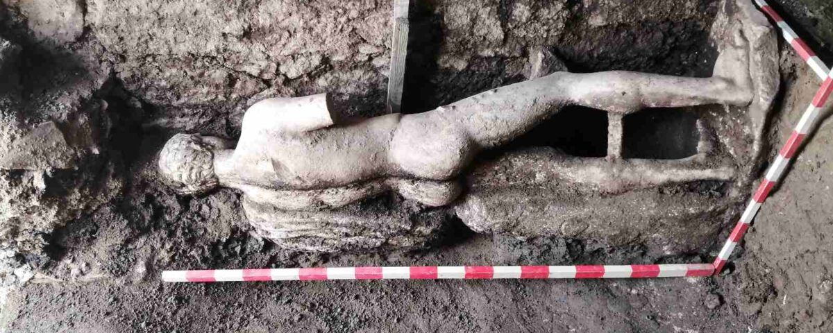 Става въпрос за напълно запазена мраморна склуптора над 2 метра, която вероятно изобразява бог Хермес.