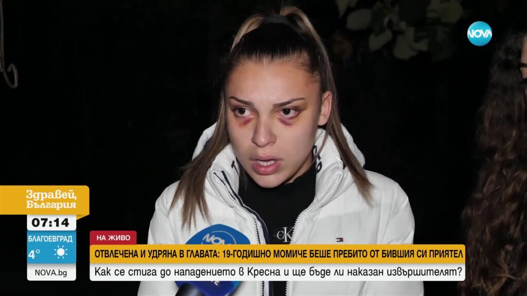 19-годишно момиче от Кресна е отвлечено и жестоко пребито от своя бивш приятел, който според пострадалата, не приемал решението ѝ да се разделят. За първи път, пред bTV говори 21-годишният мъж, обвинен за нападението. Ивана се прибира от Лондон в къщата на баба си в Кресна миналата сряда. Същият ден в дома ѝ бившият ѝ приятел я напада пред очите на 76-годишната ѝ баба и братовчедка, разказва тя. След побоя мъжът я качва насила в автомобила си и я отвежда в гориста местност край града.