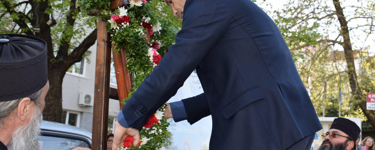 С венец от цветя, тя бе посрещната и окичена от кмета на община Сандански – Кирил Котев пред сградата на община Сандански.