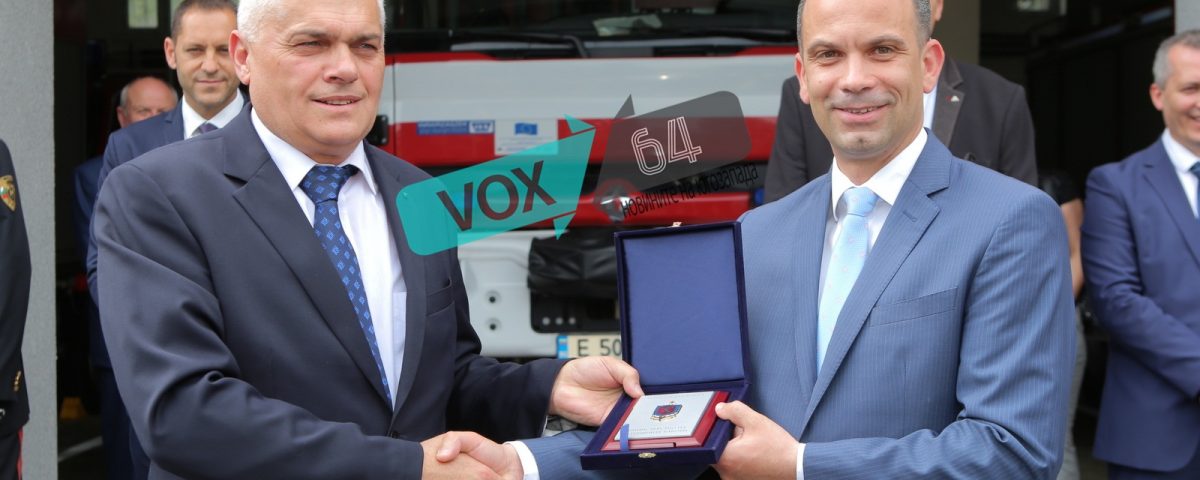 На вчерашното откриване на обновените и санирани сгради на РУП и РСПБЗН – гр. Сандански, Валентин Радев – Министър на вътрешните работи, връчи плакет на кмета на община Сандански – Кирил Котев.