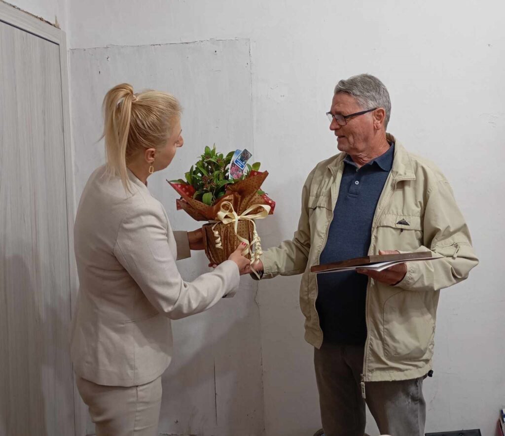 От името на кмета на община Струмяни г-н Емил Илиев и цялата общинска администрация рожденика получи поздравителен адрес, икона на „Света Богородица“ и красиво цвете, с пожелание за здраве, да бъде все така всеотдаен, да бъде социално ангажиран и мотивиран да дарява грижа, мъдрост и знания на своите съграждани и близки.