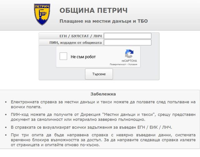 За жителите на Община Петрич вече има нов виртуален терминал за справки и плащания на местни данъци и такси!
