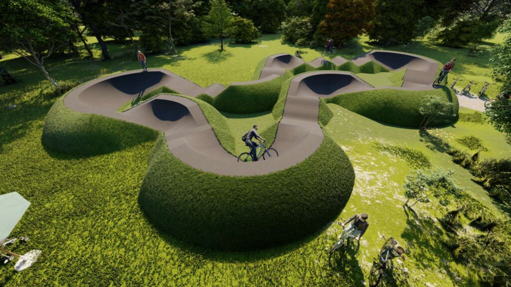 Велосипедният парк ще представлява поредица от скокове и виражи с различни наклони и е проектиран за велосипеди, скейтборди, ролери, тротинетки и др.