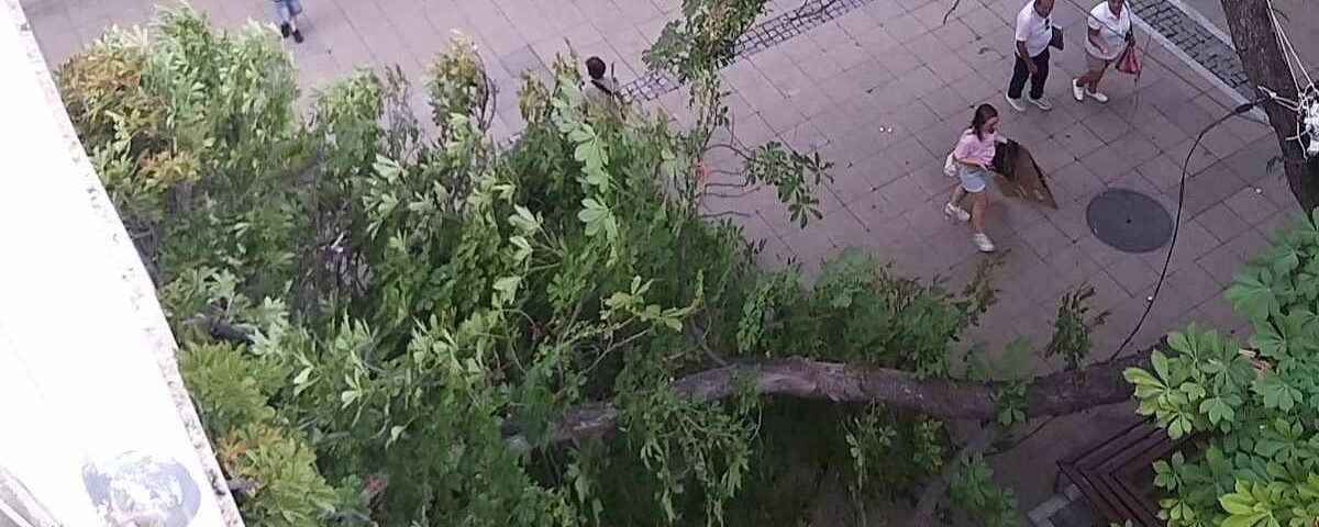 Тази вечер на главната пешеходна улица в Благоевград, пред Тото пункта срещу ОББ, се откърши и падна голям клон от дърво. За щастие няма пострадали.