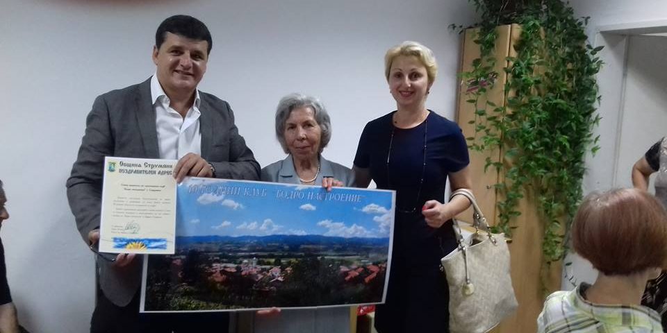 На 9-ти август 2017г пенсионерски клуб „Бодро настроение“ -с.Струмяни , отбеляза своя десетгодишен юбилей от създаването на клуба.На пъстрото и емоционално тържество присъстваха кмета на община Струмяни – г-н Емил Илиев,заместник кмета по хуманитарни дейности – г-жа Фиданка Котева ,г-н Валентин Чиликов-общински съветник в община Струмяни и всички домакини-пенсионери. В емоционално наситена реч – председателят на клуба – Нора Груева, разказа за трудното начало преди десет години,когато е създаден клуба,за емоциите,търсенията и постоянният труд,положен от пионерите.Днес вече членовете на клуба от 40 са достигнали до 120 и разполагат с прекрасно оборудвана база за срещи , за разговори и събития , за чиято подкрепа и съдействие бе благодарено на всички общински ръководства до момента .Красивата летописна книга,която разказва историята и дейностите на пенсионерския клуб с гордост бе показана на всички присъстващи, а емоцията и доброто настроение през цялата вечер бе поддържано от самородните таланти на акордеона – г-н Серезлиев, талантливата певица Зорка Руйкова и всички надарени с глас членове на клуба.