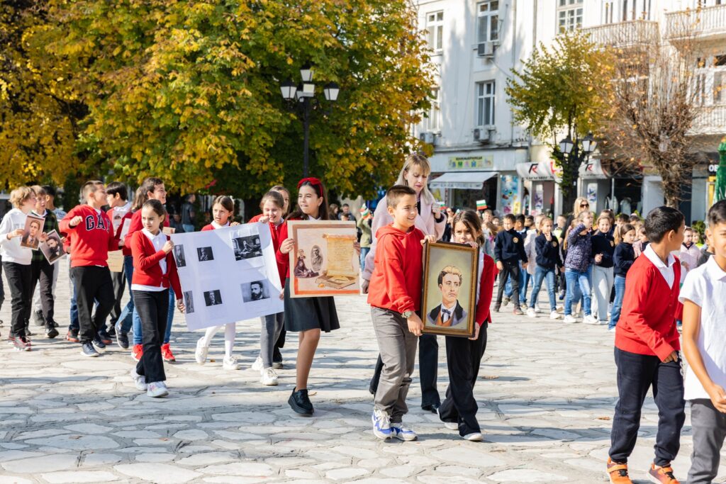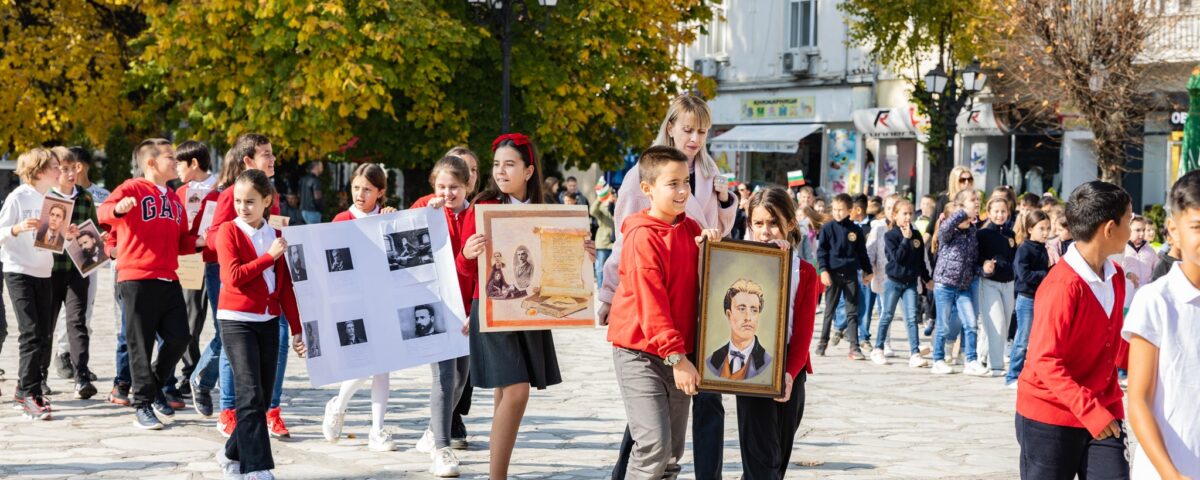По повод 1 ноември, с празнично шествие, деца от всички детски градини и училища в града пристигнаха на площад „Преображение“, носейки в ръцете си портрети на народни будители.