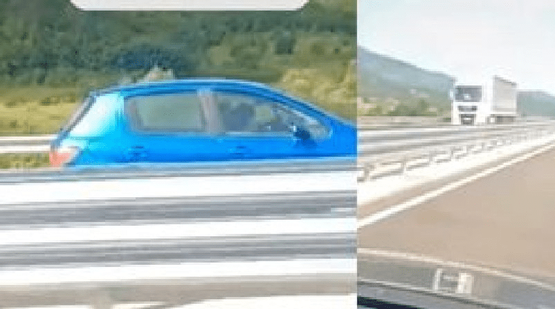 В социалните мрежи бе пуснат клип, който показва „Пежо“, което лети в насрещното на една от магистралите и дори изпреварва шофьорите, които са в правилното платно.