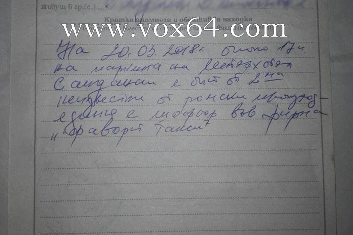 На 20.03.2018 в спешното отделение на гр. Сандански е постъпил пребит шофьор от негов колега. Диагнозата е комоцио.