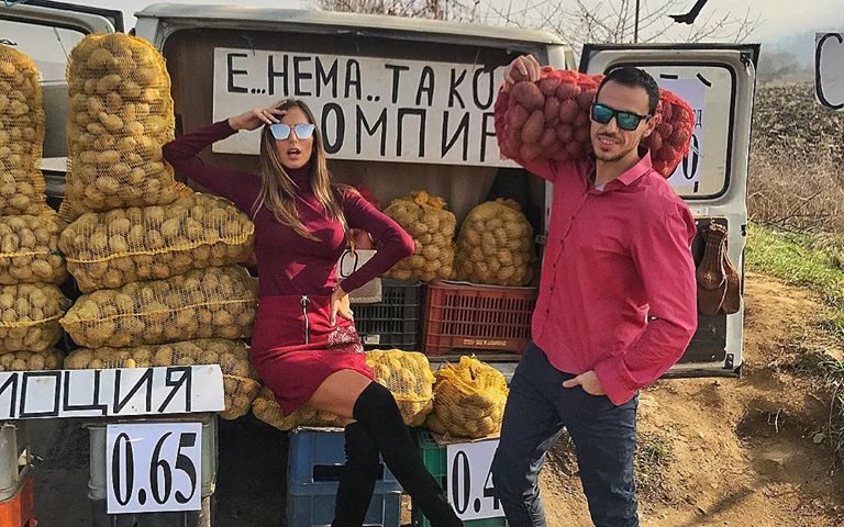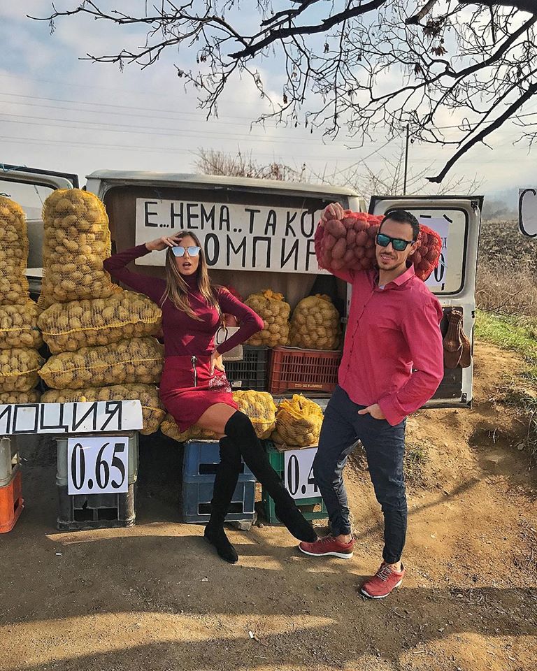 Моделката Алекс Богданска от Благоевград и съпругът й Даниел Петканов се втурнаха да продават картофи насред пътя с цел – попълване на семейния бюджет.