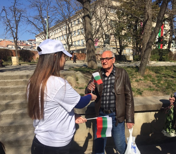 По инициатива на Стоян Стоев, общински съветник и координатор на ГЕРБ в Сандански, днес бяха раздавани български знамена на всички гости и жители на общината, които отиваха да поднесат цвете в памет на загиналите за Освобождението на България.