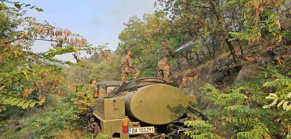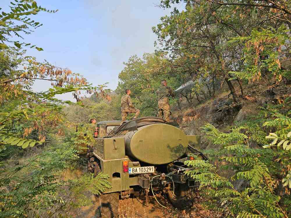 Военнослужещи от Сухопътните войски и Военновъздушните сили и днес, 3 август, участват в гасенето на големите пожари в Област Благоевград.