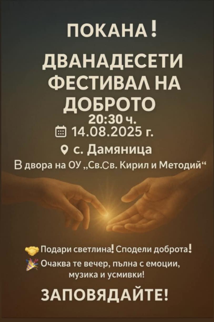 На 14 август 2025 г. (четвъртък) от 20:30 ч. дворът на ОУ „Св. Св. Кирил и Методий“ в село Дамяница ще се превърне в сцена на […]