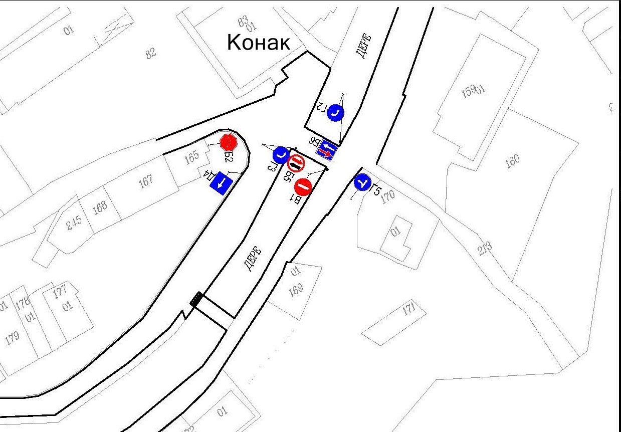 Организацията на движението е съобразена с елементите на пътното трасе, пътните кръстовища на градската територия и пешеходните потоци.