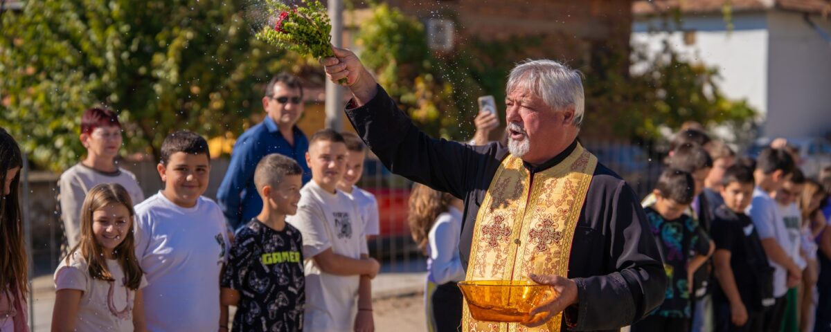 Водосветът за първата копка на многофункционалната спортна площадка отслужиха отец Живко Димитров и отец Иван Янчев.