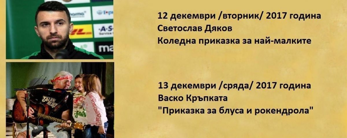 В понеделник / 11 декември/ от 18.00 часа ще бъде поставено началото на една от най- очакваните инициативи – „Часът на приказния разказвач“. Около камината, с топло мляко, чай и бисквити, децата ще могат да чуят любими приказки, пресъздадени от звездни разказвачи.